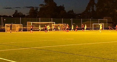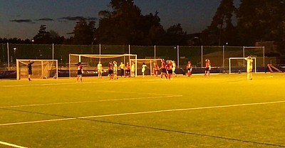Vi hade kommit överens om att då det är sen vardagskväll så spelar vi 2x40 minuter istället för full matchtid! Matchen var flyttad för att våra ordinarie match krockade med deras A-lagserie och sedan var det svårt att hitta ny tid som inte krockade och då hade vi möjlighet att ta "hem" matchen och spela på Nacka IP.